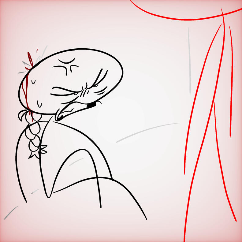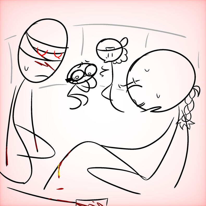 the person from earlier jumps and squeals when they see your wound— which isn't that bad, but the outcome will be.