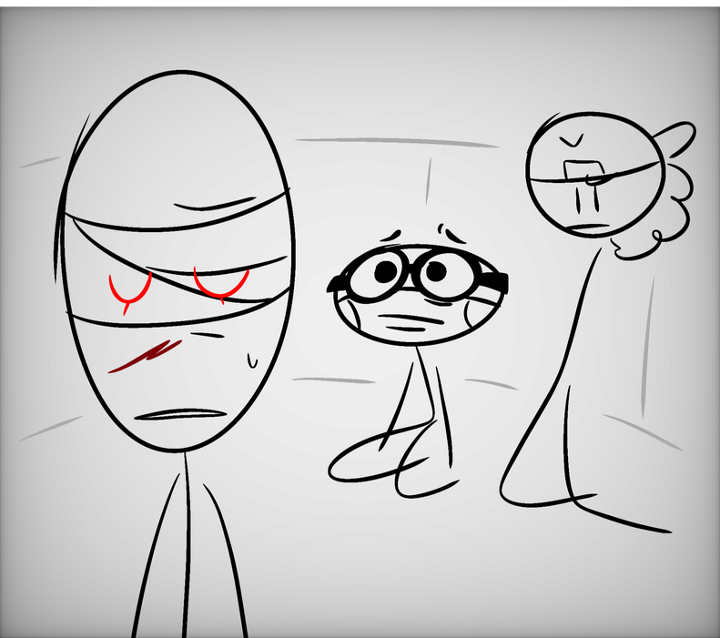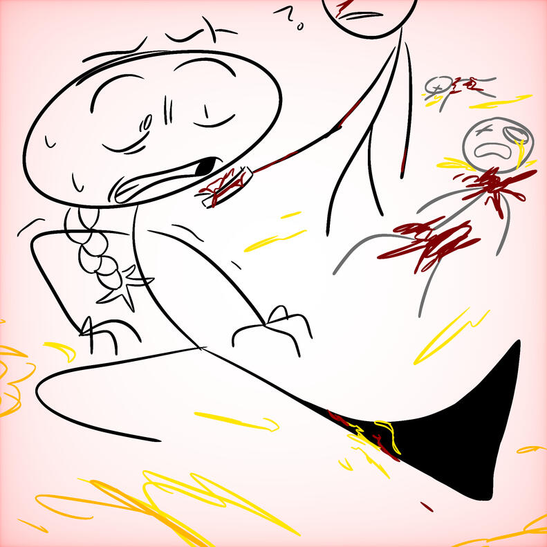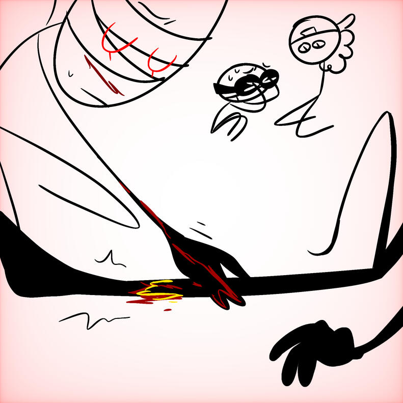 you propose an amputation, which Eyes agrees to. they feel along your leg to tell where to cut as Goof watches with interest and Jumpy looks away.